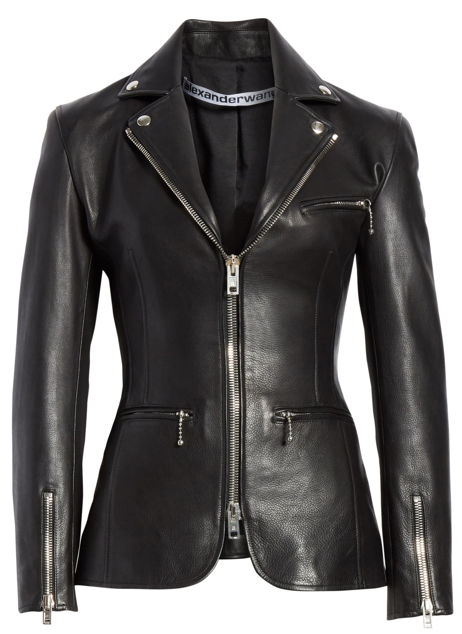[2020] [ALEXANDER WANG] Ball Chain Leather Moto Jacket